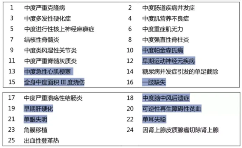 妈咪保贝25种中症里,标蓝的10种为高发的重疾,而且中度肌营养不良、中症重症肌无力、中度类风湿性关节炎2、出血性登革热也都是少儿高发疾病。