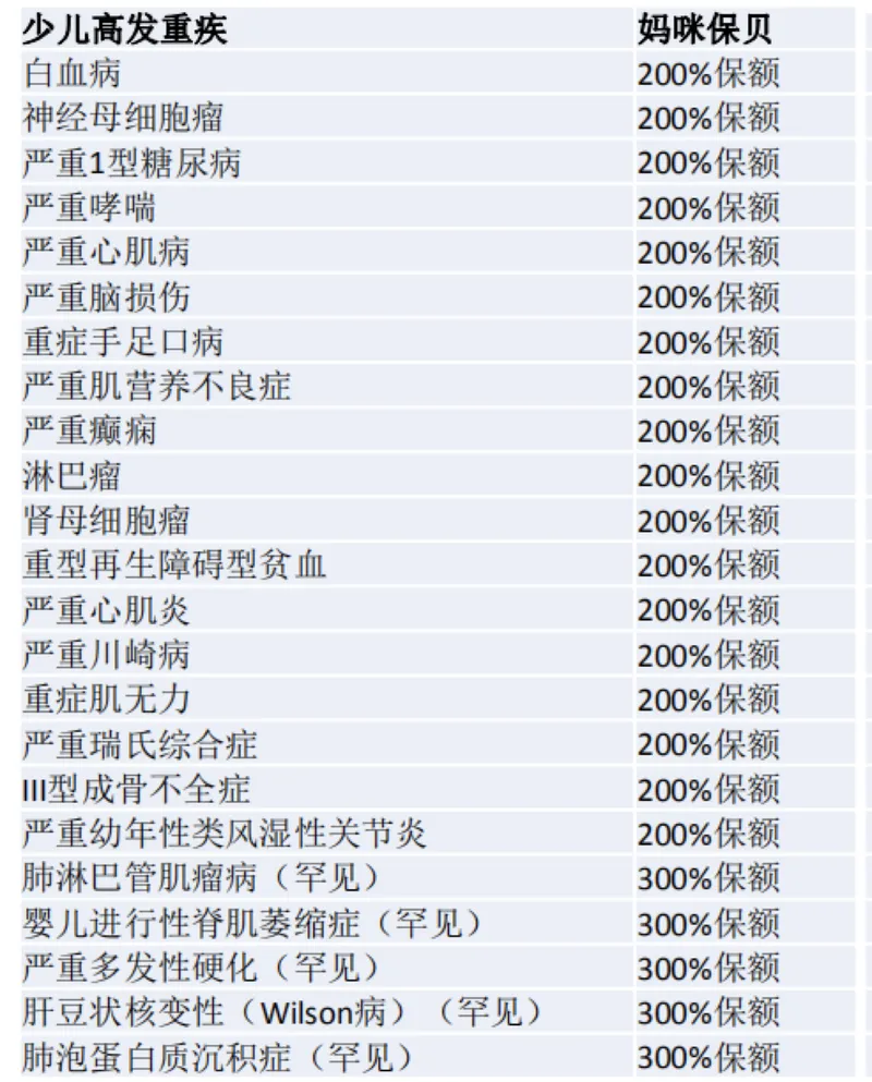 少儿罕见疾病,作为妈咪保贝的创新,发病率虽低,但一旦发病,可获得三倍赔付,若投保100万保额,可赔300万,牛!