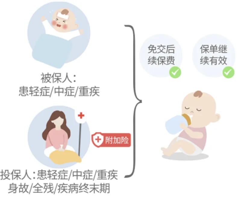 投保人豁免为附加险,因为意外伤害或等待期180后意外伤害以外的原因,投保人首次确诊附加合同约定的重大疾病、中度疾病或轻度疾病,或出现身故、全残、疾病终末期的情况,后续保费免交。